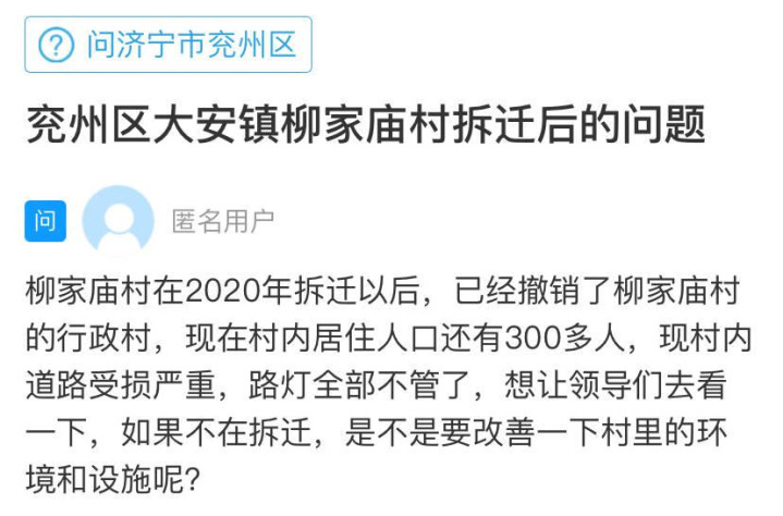 齐鲁网·闪电新闻8月31日讯济宁的一位网友在闪电新闻网络问政平台留言:柳家庙村在2020年拆迁以后今日云策,已经撤销了柳家庙村的行政村建制,但还有300多人在村内居住。目前今日云策,村内道路受损严重,路灯都不亮了。希望相关部门帮助改善一下村里的环境和设施。