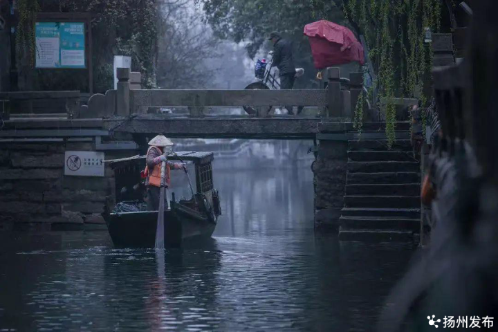 在广陵,街巷则如古树盘根,从主脉探出细枝,织成天然的网。卖盐水鹅的三轮车旁排起长队,澡堂蒸腾的水雾漫过斑驳砖墙,卖菜人的吆喝“如拨琴筝”。青砖路、黑漆门内,曾“走出父亲的背影”,巷是生活的根系,深扎古城沃土。