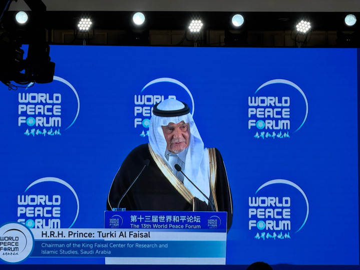 7月3日,第十三届世界和平论坛在北京开幕。沙特费萨尔国王学术与伊斯兰研究中心主席图尔基·费萨尔亲王在下午的大会上发表主旨演讲,他用“怪物横行”形容当前的全球局势共享财富,强烈批评以色列和伊朗的对抗正在加剧地区危机。